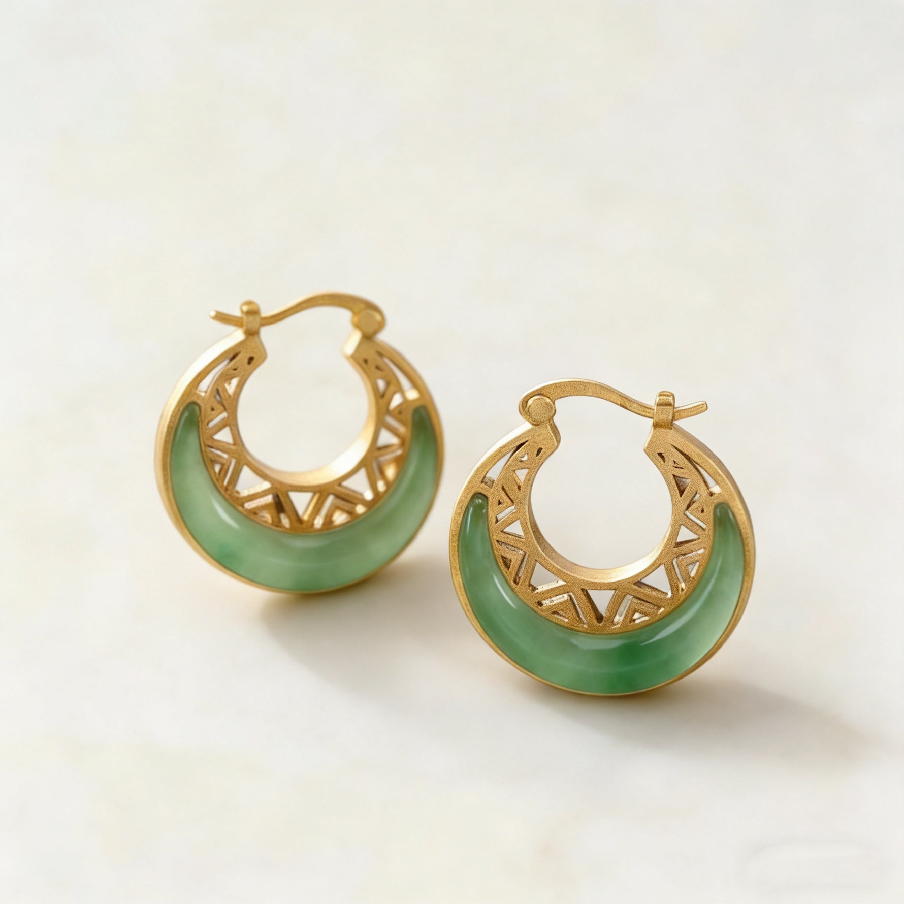 Growth is the rhythmic alignment with your own potential. The Crescent Moon Jade Drop Earrings are defined by the symbiotic frequency of Natural Jade—a vibrational stabilizer designed to filter emotional static—and the Crescent Moon, a geometric representation of unfolding potential.