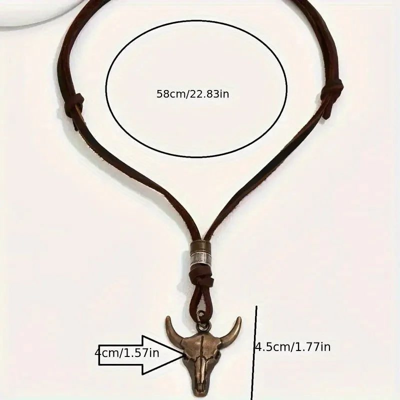 The Frontier Soul Western Cowboy Vintage Bull Skull Pendant Necklace