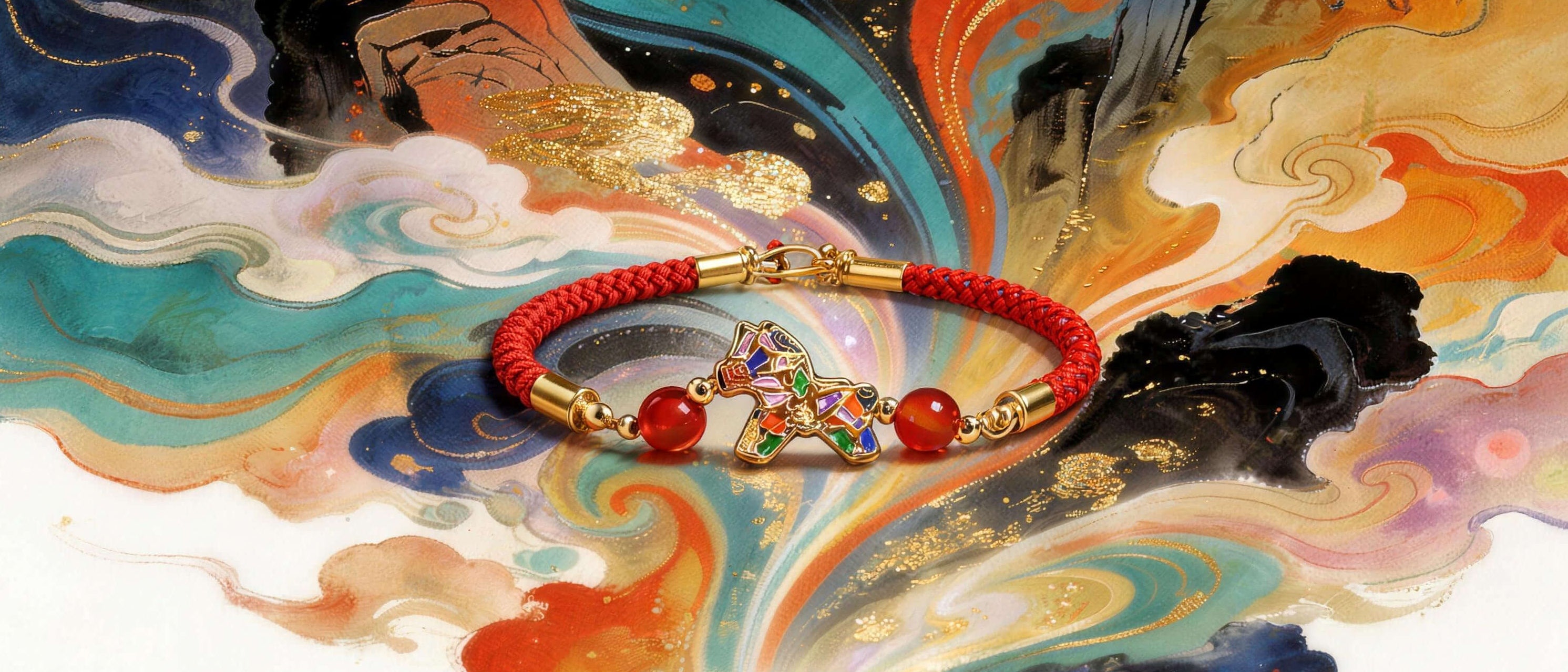 Sacred Handmade Lotus and Koi Fish Lucky Red String Bracelet