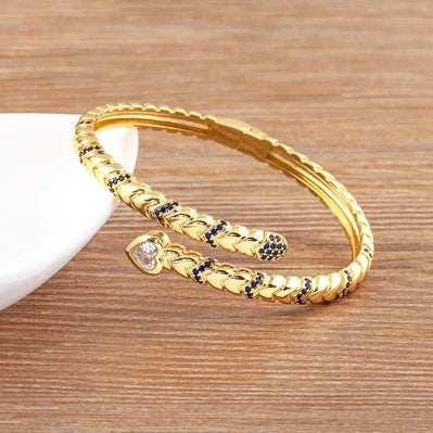 Wisdom is a circle that never ends. The Serpentine Grace Bangle features a beautifully fluid zodiac snake entwined with a celestial crescent moon, symbolizing the "Little Dragon" as a silent guardian of lunar cycles and personal renewal. Crafted from high-quality 925 sterling silver, this adjustable open-end bracelet is designed to anchor your spirit while allowing for the graceful shedding of old limitations.