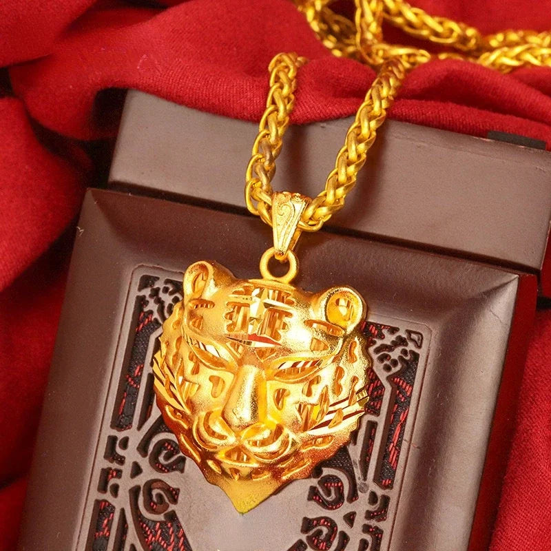 True dominance is felt before it is seen. The Gilded Roar Pendant captures the raw, kinetic energy of the Tiger—the biological sentinel of supreme authority and solar vitality—rendered in a brilliant sand-gold finish that radiates with unyielding presence.