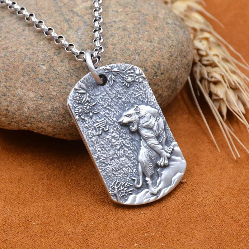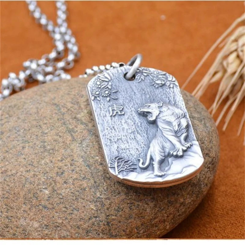 The Unbound Legacy Vintage Relief Zodiac Tiger Amulet Necklace