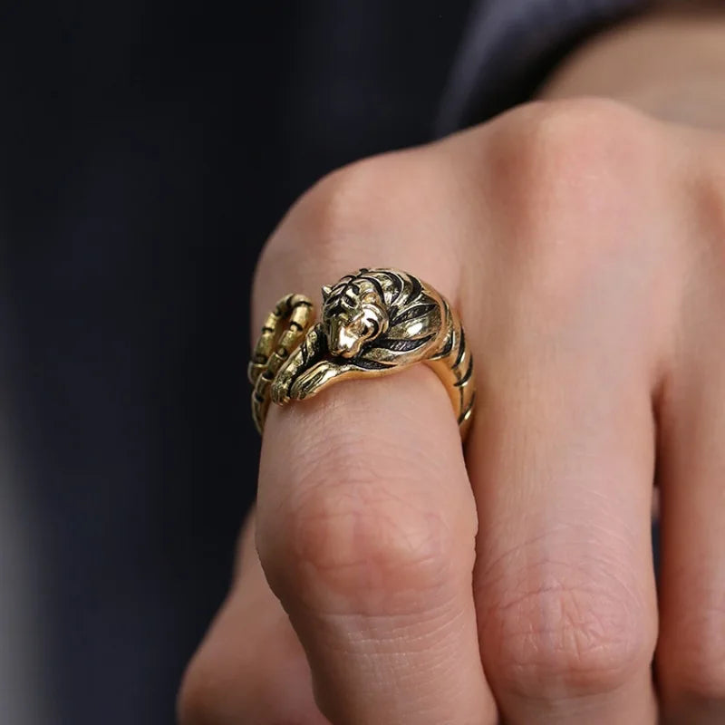 True authority is not broadcast; it is felt in the silent weight of a golden stride. The Gilded Monarch Ring captures the Tiger in its most potent state—the biological sentinel of absolute courage—designed in a rich, weathered gold finish to evoke the enduring power of ancient dynasties.